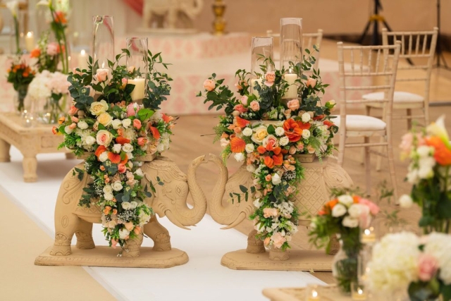 The Nandini Mandap has been created to give you this powerful wedding atmosphere with the elephant design providing the marriage ceremony with an aura of strength and beauty.