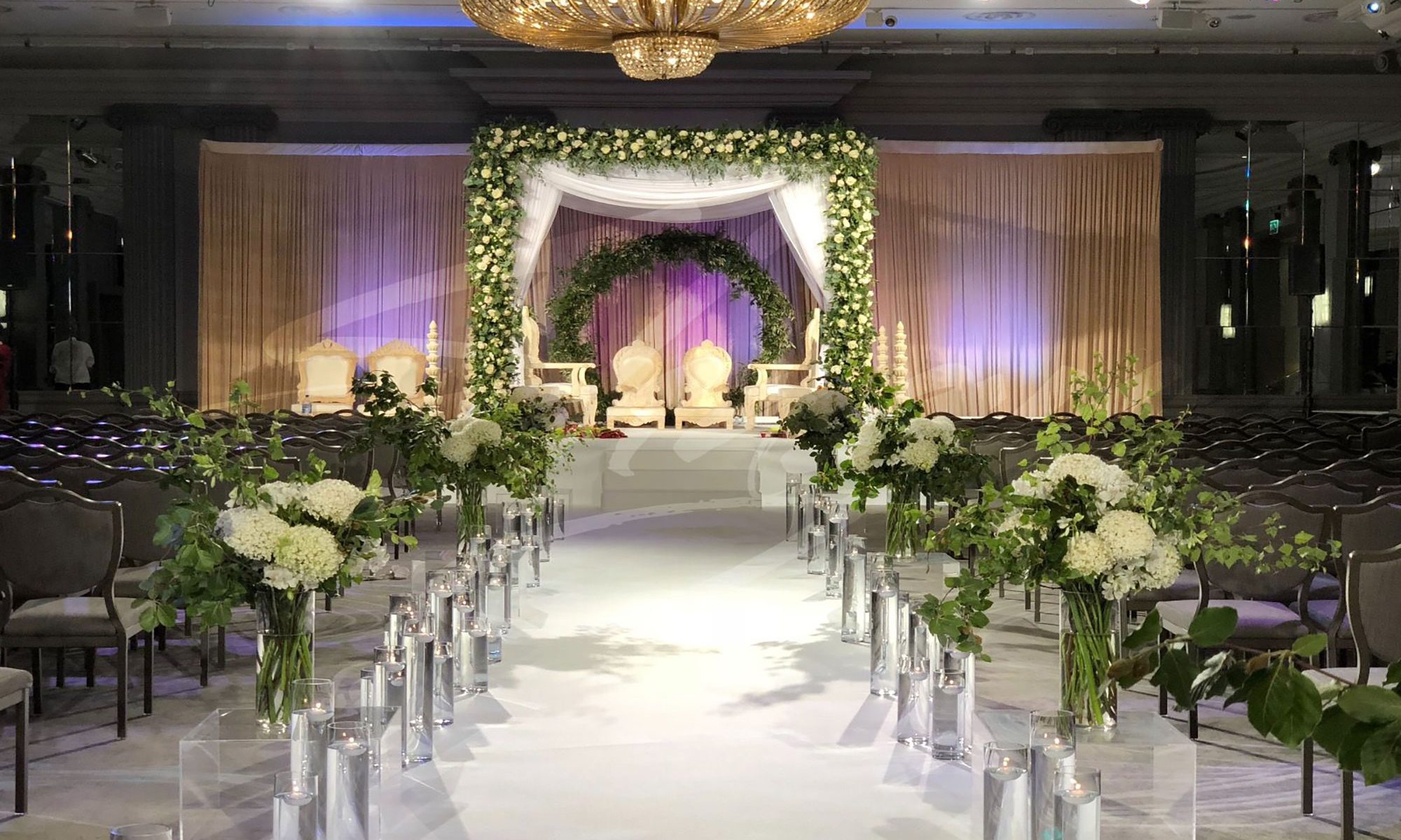 Gorgeous flowing drapes that hang between each pillar, the Jai Mala creates a fresh and flowing look to your wedding day that your guests will gasp at in admiration.